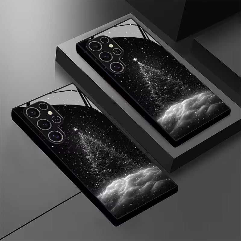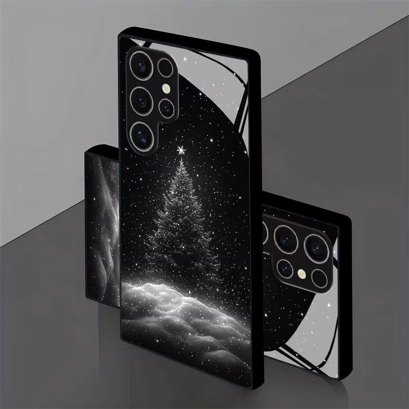 Step into a world where winter magic meets cosmic calm. The Midnight Winter phone case captures the serene beauty of a snow-covered pine tree glowing softly under a star-filled night sky. Designed in elegant monochrome, it blends minimalism with a dreamy winter aesthetic, making it the perfect accessory for those who love sophistication with a touch of wonder.