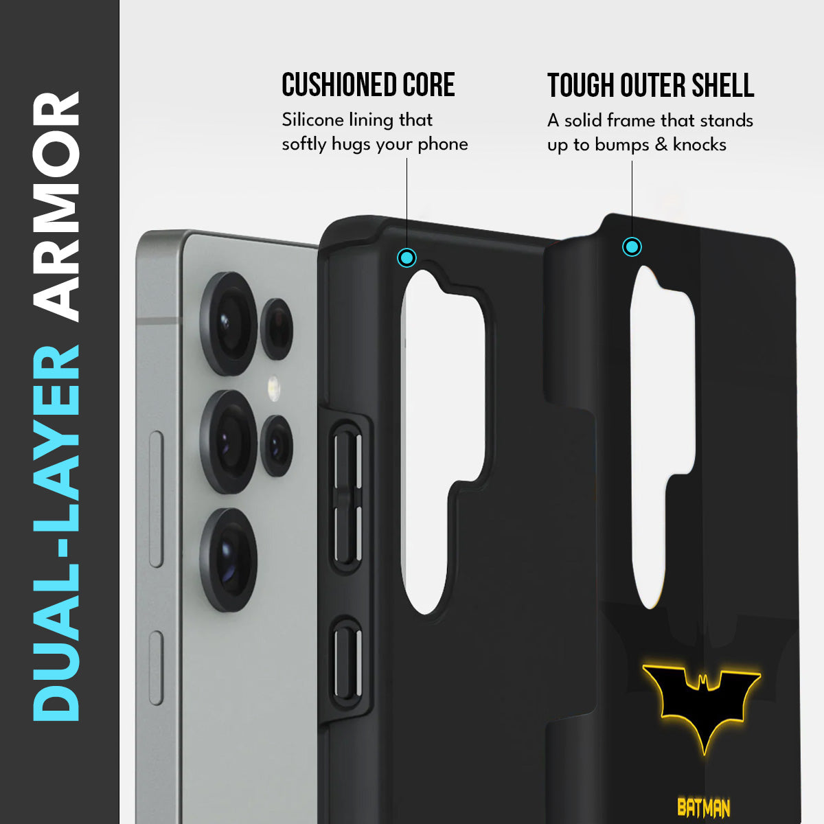 Unleash your inner vigilante with the Neon Bat Signal Case, designed for fans who carry the spirit of Gotham wherever they go. Featuring a bold, glowing Batman emblem against a sleek midnight-black backdrop, this case captures the iconic essence of the Dark Knight with a modern neon twist.