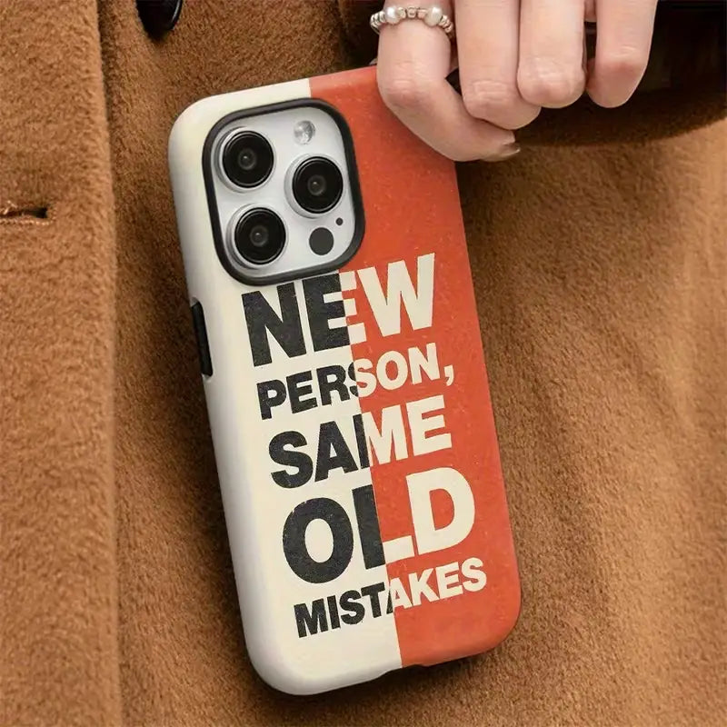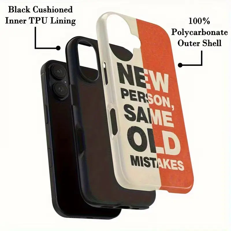 The New Mistakes Case is designed for those who embrace growth, humor, and a little bit of real-life chaos. Featuring a bold split-tone design and a striking typographic quote, this case adds personality while keeping your phone protected. Its matte finish gives it a premium feel, while the durable build ensures everyday safety from drops, scratches, and wear.