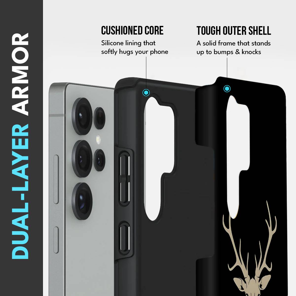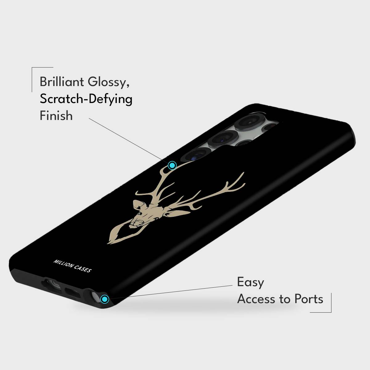 Bring a touch of wilderness elegance to your phone with the Noble Stag case. Featuring a striking minimalist deer emblem set against a deep black background, this design symbolizes strength, wisdom, and quiet power. Crafted with premium materials, the case offers excellent grip, precise cutouts, and durable protection while maintaining a sleek, modern aesthetic.