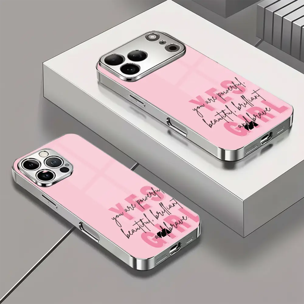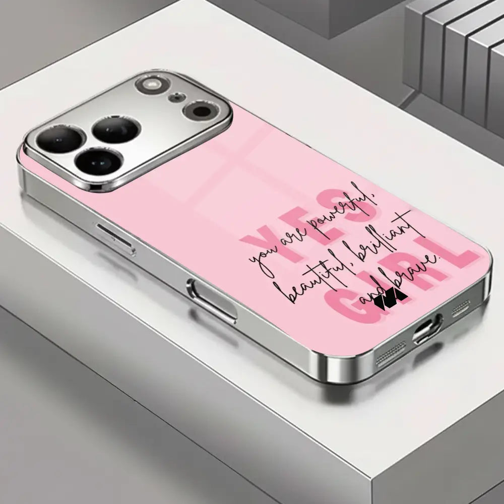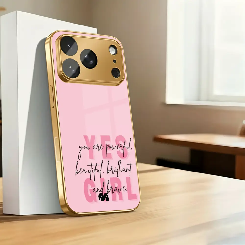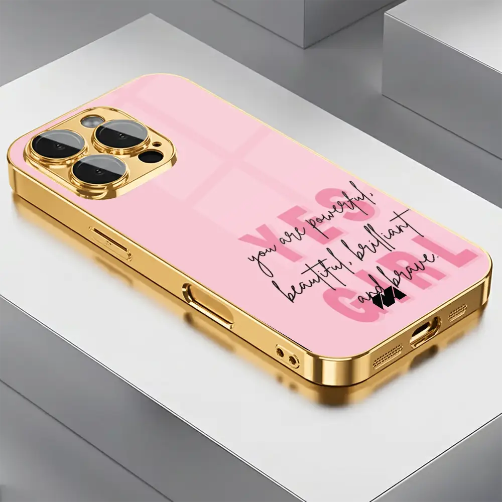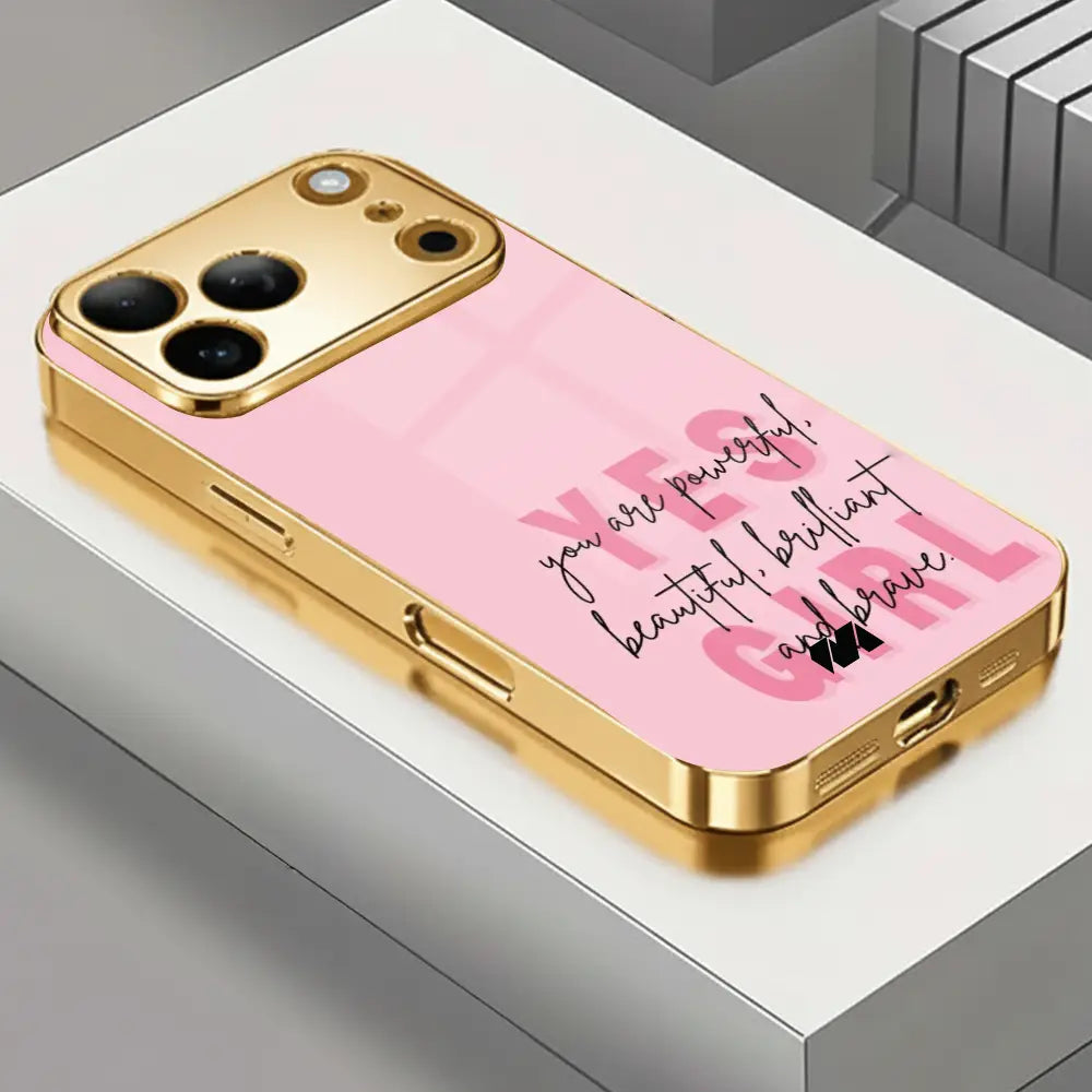 Soft in tone, strong in spirit. The Pretty Powerful case blends gentle blush hues with an empowering message, creating a design that celebrates confidence, self-love, and inner strength. Accented with elegant gold edges, this case turns everyday protection into a bold style statement.