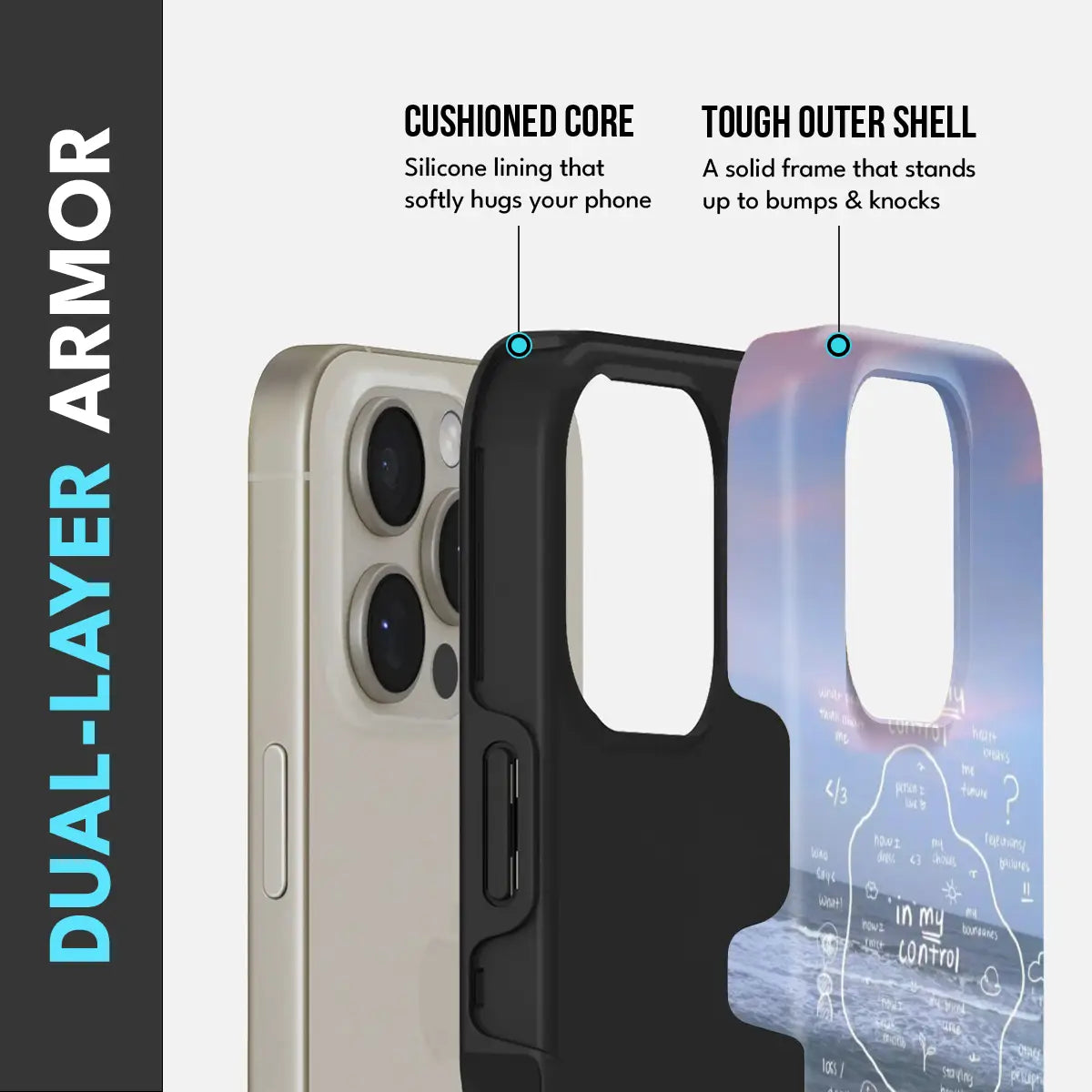 - Dual-Layer Protection: The phone case features silicon cushioning inside and a durable PC exterior outside.