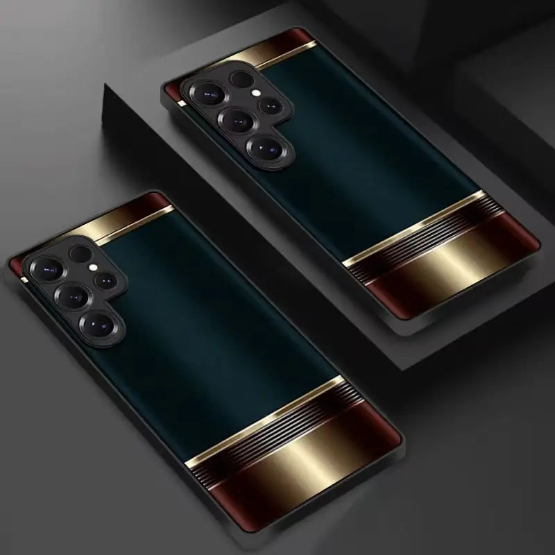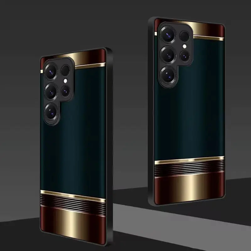 Regency Block Case embodies refined power and timeless luxury through a bold, structured design. Deep, rich tones are framed by polished metallic accents, creating a strong architectural look inspired by classic regency style and modern executive elegance.