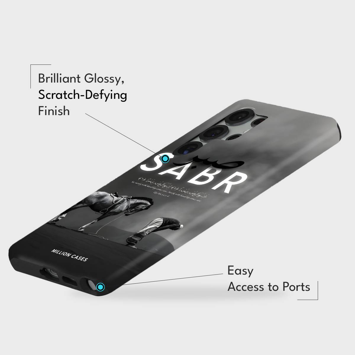 Embody patience, resilience, and unwavering faith with the Sabr Strength Case. Designed in calming monochrome tones, this case features a powerful scene of humility and endurance—a man in prostration beside his loyal horse, accompanied by the Arabic word Sabr and its Quranic reminder.