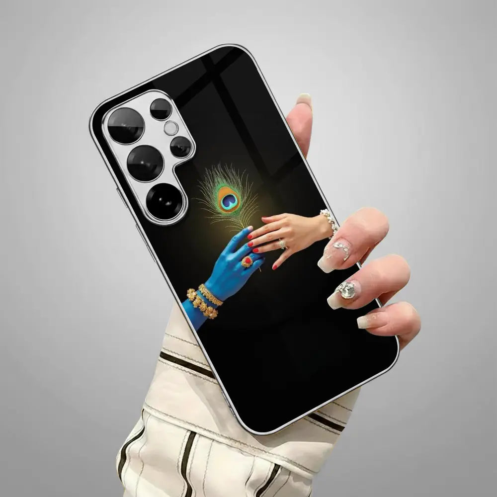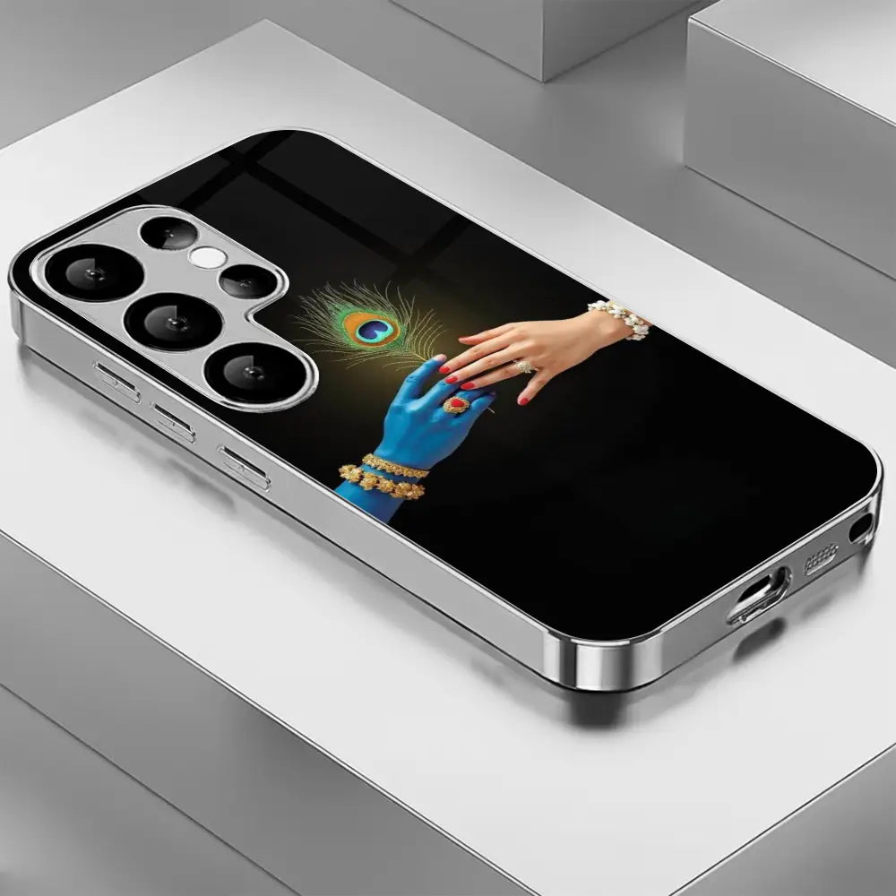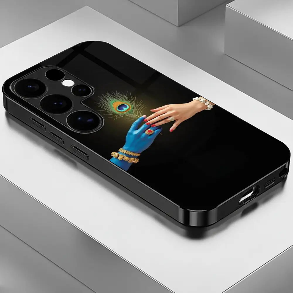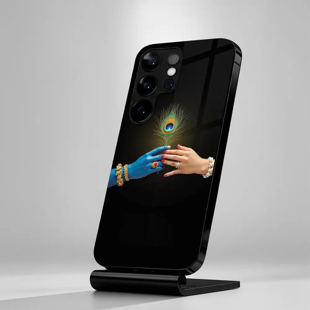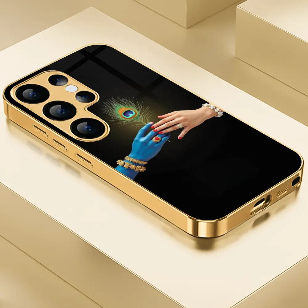 Elevate your device with the Sacred Peacock Bond, a masterpiece of spiritual artistry and modern luxury. This case features a high-gloss black finish framed in brilliant gold, centering on a poignant and symbolic interaction.