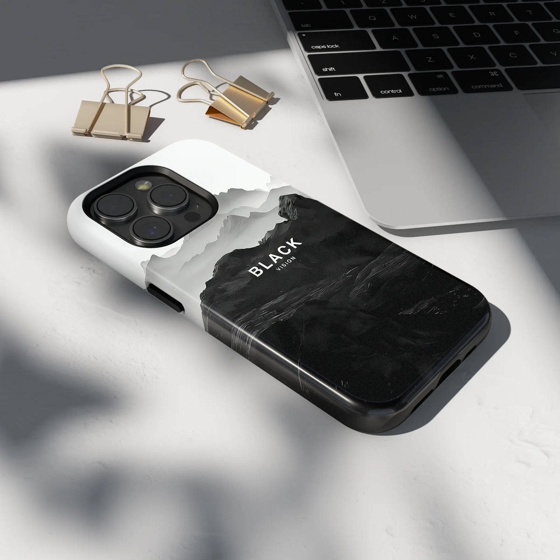 Embrace the calm strength of the mountains with the Silent Peaks case. Designed with a stunning monochrome landscape, this case captures the mystique of misty summits and quiet horizons. Its minimalist black-and-gray tones blend modern elegance with rugged inspiration, making it the perfect accessory for those who seek style and adventure in one.