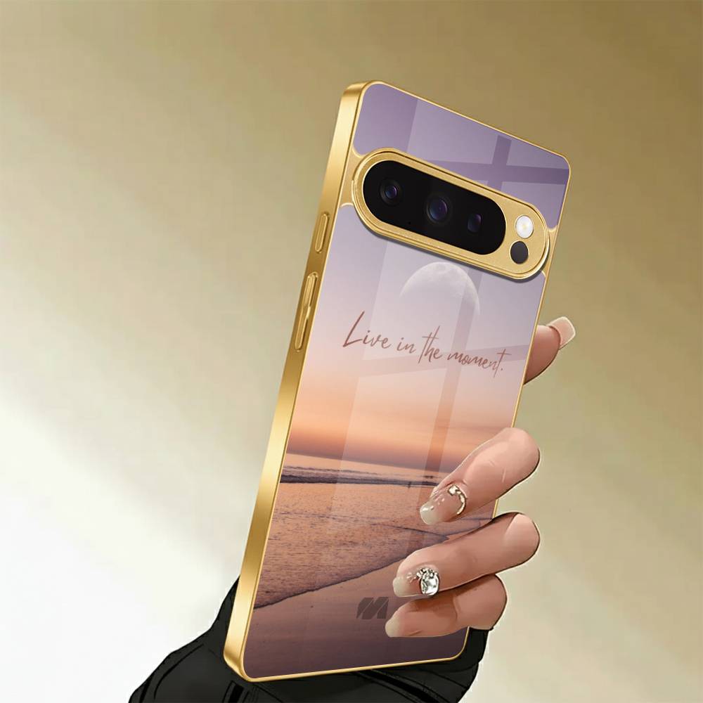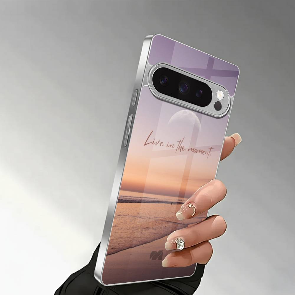 Crafted with a smooth tempered glass back and a sleek metallic frame, the case brings a touch of modern minimalism while offering dependable protection. Its soft gradient tones and reflective finish create a calming visual escape — perfect for dreamers, travelers, and those who appreciate simple beauty.
