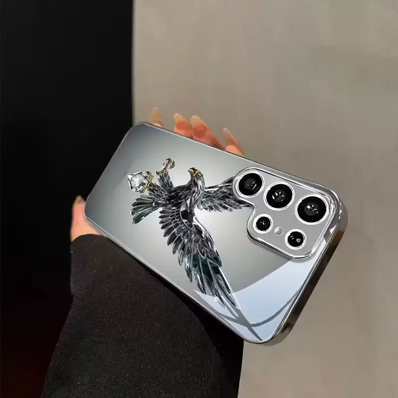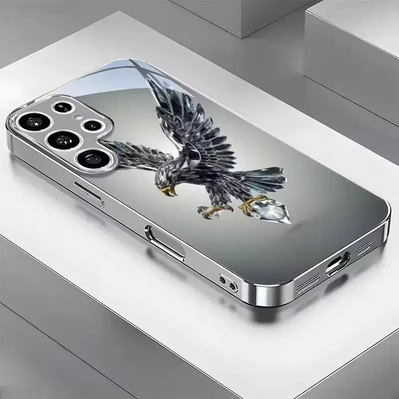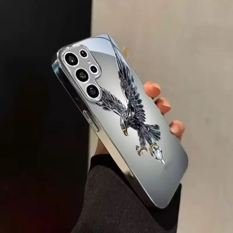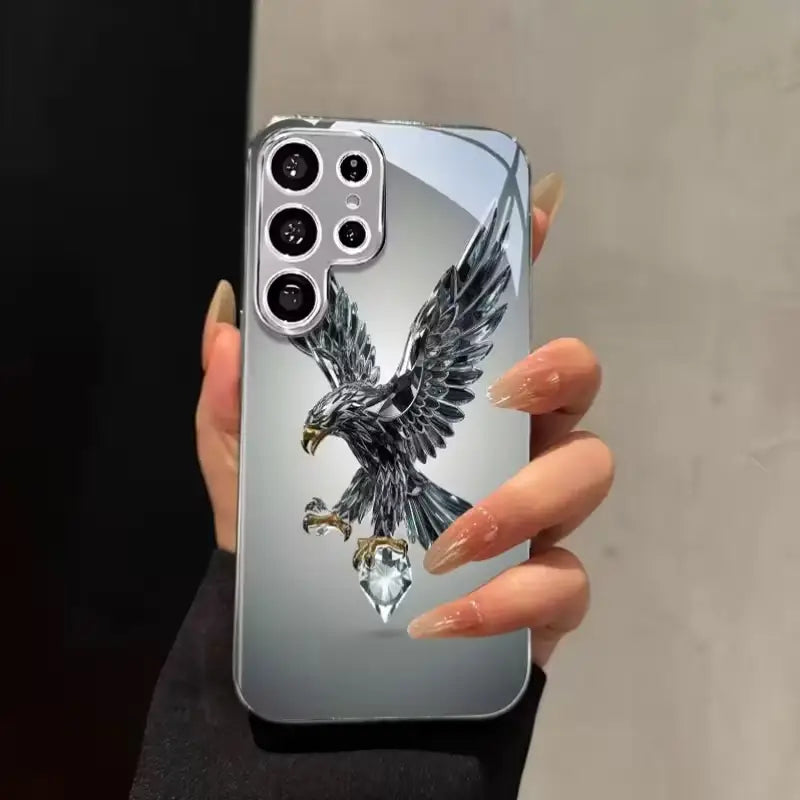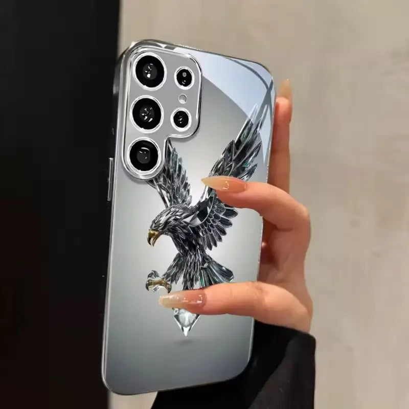 Command the skyline with Storm Wings—a mirror-silver case centered by a sculpted, dark-chrome eagle in mid-dive. The metallic art catches the light like storm clouds on steel, giving your phone a fierce, premium look without extra bulk.