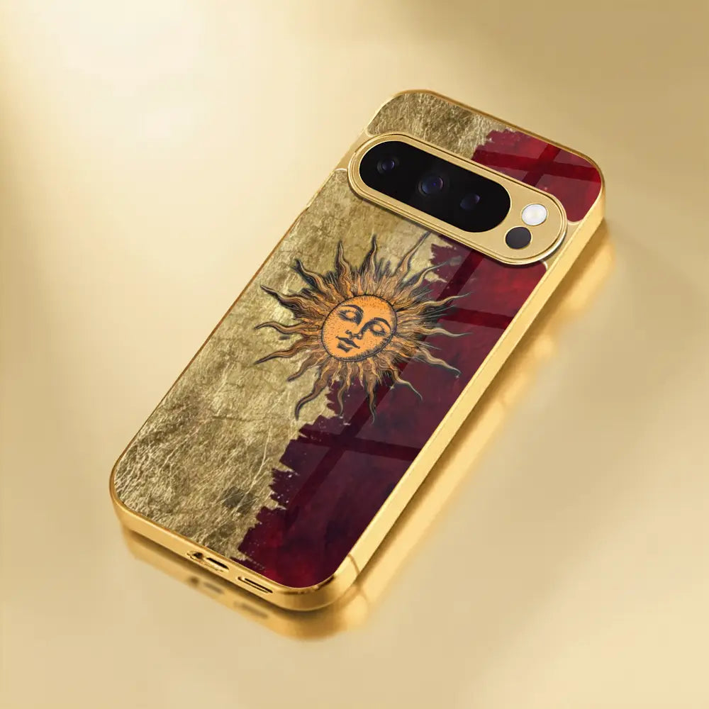 The Sun Warrior Case embodies fearless strength and radiant dominance, inspired by the eternal power of the sun. Set against rich crimson and gold tones, the bold sun emblem symbolizes victory, resilience, and divine energy.