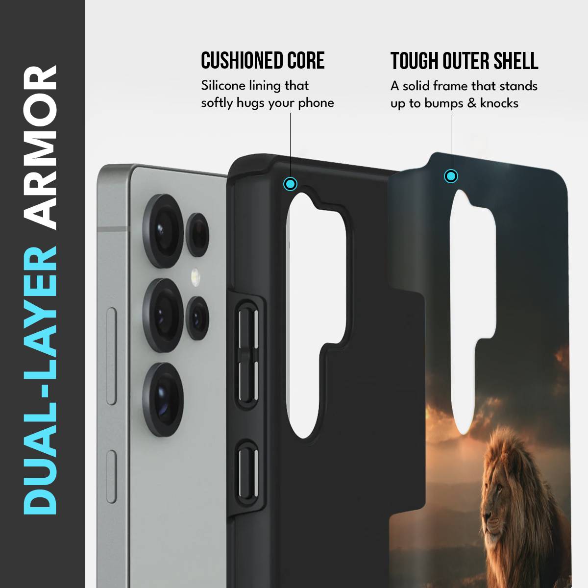 - Dual-Layer Protection: The phone case features silicon cushioning inside and a durable PC exterior outside.