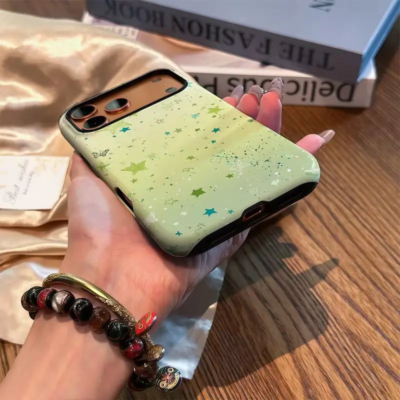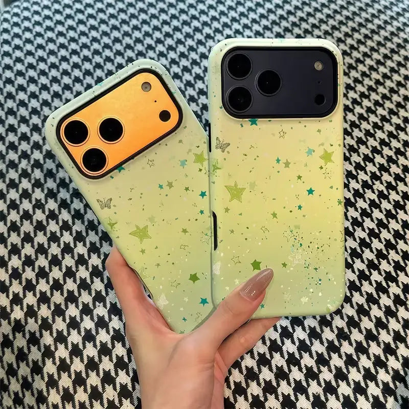 Twinkle Mint Case brings a fresh pop of color and playful charm to your everyday look. Soft mint tones are sprinkled with cheerful stars, creating a light, dreamy design that feels fun, uplifting, and effortlessly cute. The subtle sparkle adds personality without overwhelming, making it perfect for daily wear.