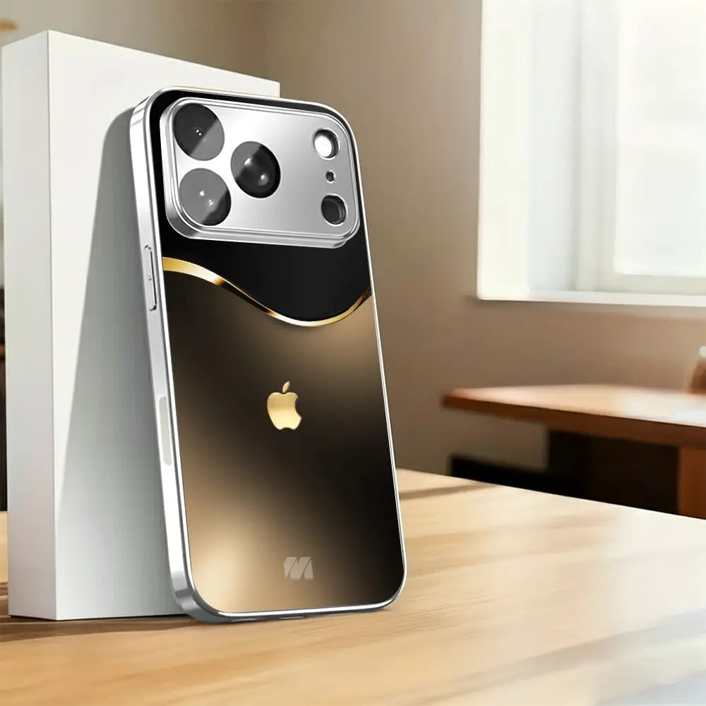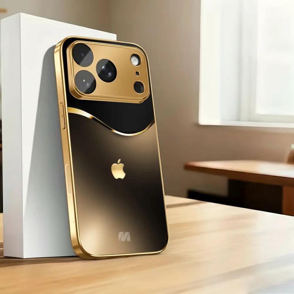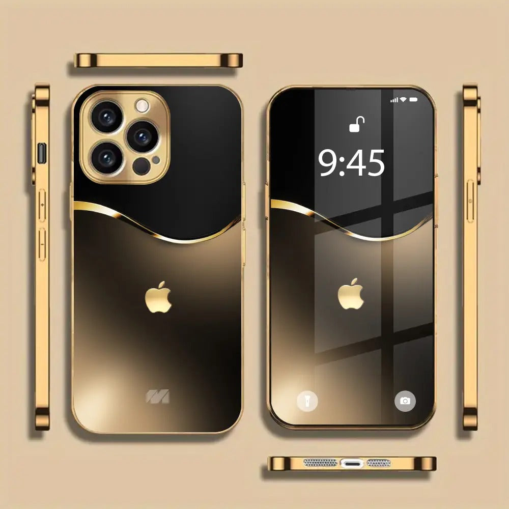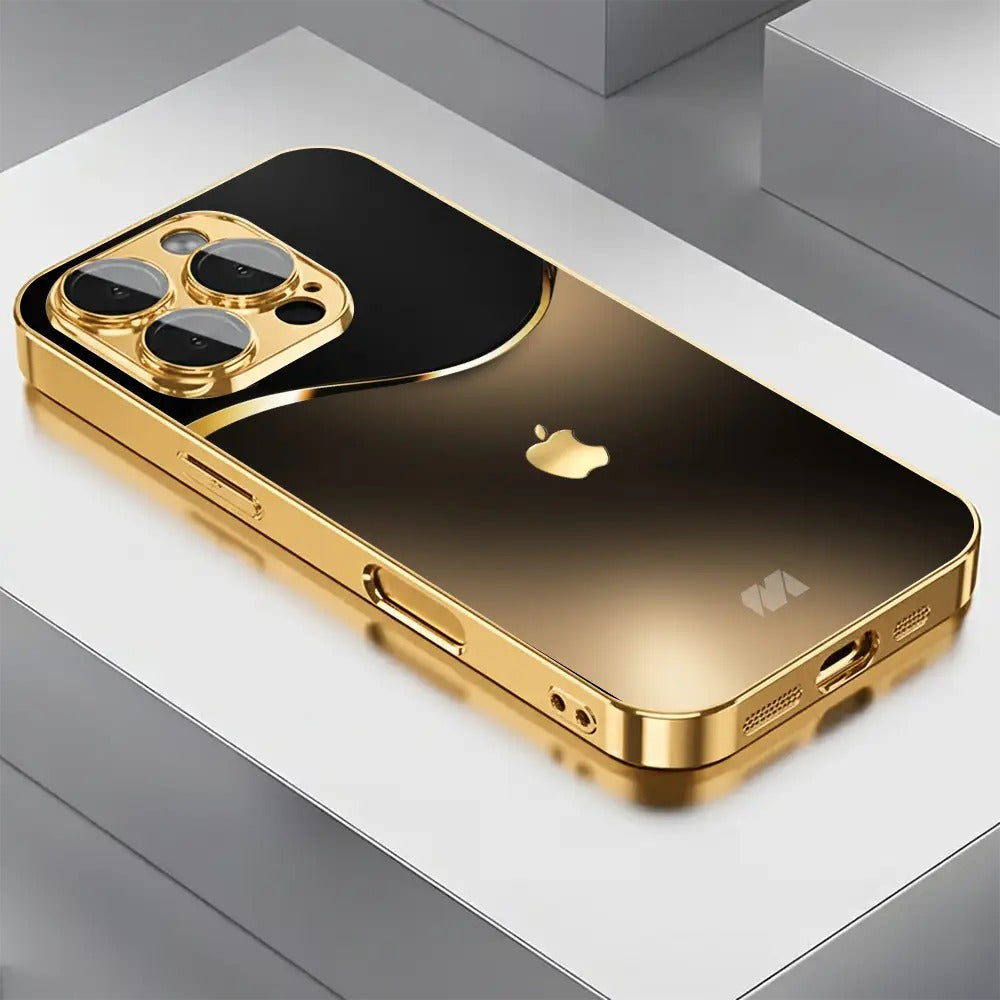 Flowing elegance meets modern luxury. The Velvet Stream Case combines a deep black gloss with a soft golden gradient that moves like liquid light, creating a design that feels both powerful and serene. Its smooth, reflective surface mirrors sophistication while the seamless electroplated frame enhances every curve with golden brilliance.