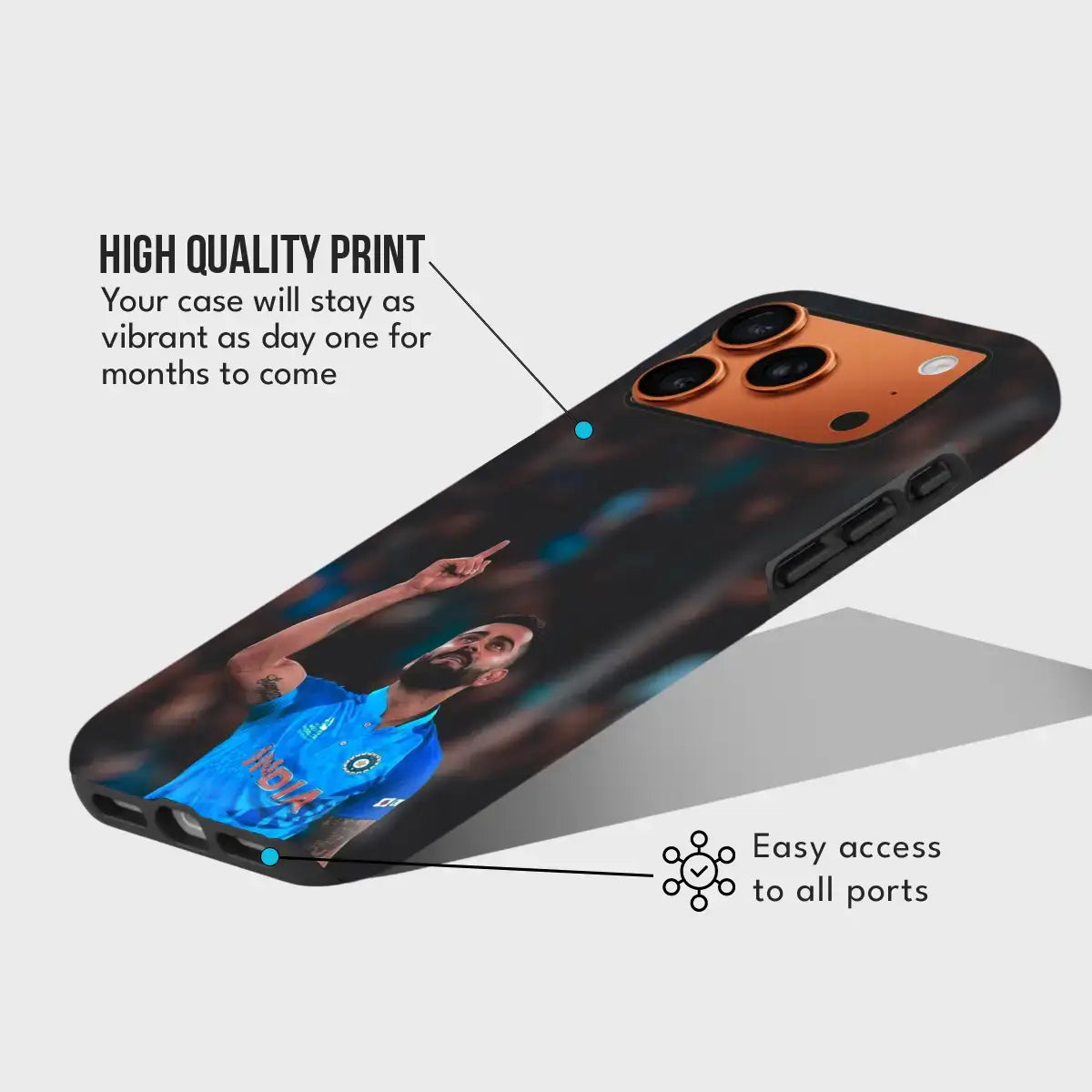 Capture the exact moment when belief turns into triumph. Victory Signal is inspired by the roar of the stadium, the raised finger of confidence, and the unstoppable spirit of the game. Featuring a striking match-day image set against a dramatic, blurred crowd backdrop, this case celebrates the emotion every cricket fan lives for.
