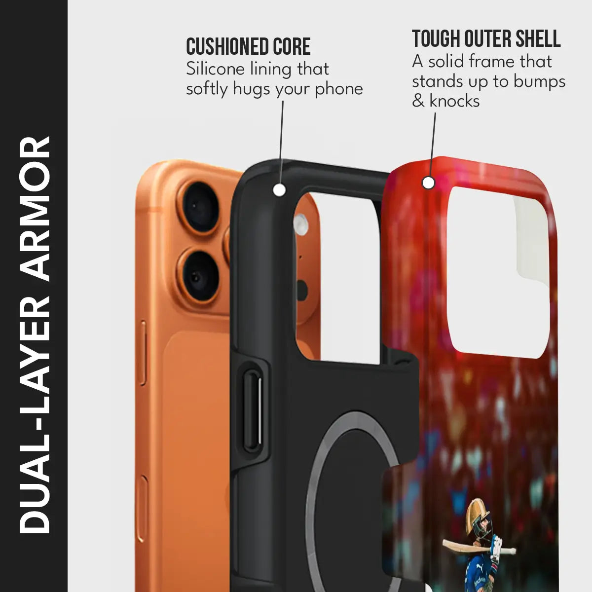 - Dual-Layer Protection: The phone case features silicon cushioning inside and a durable PC exterior outside.