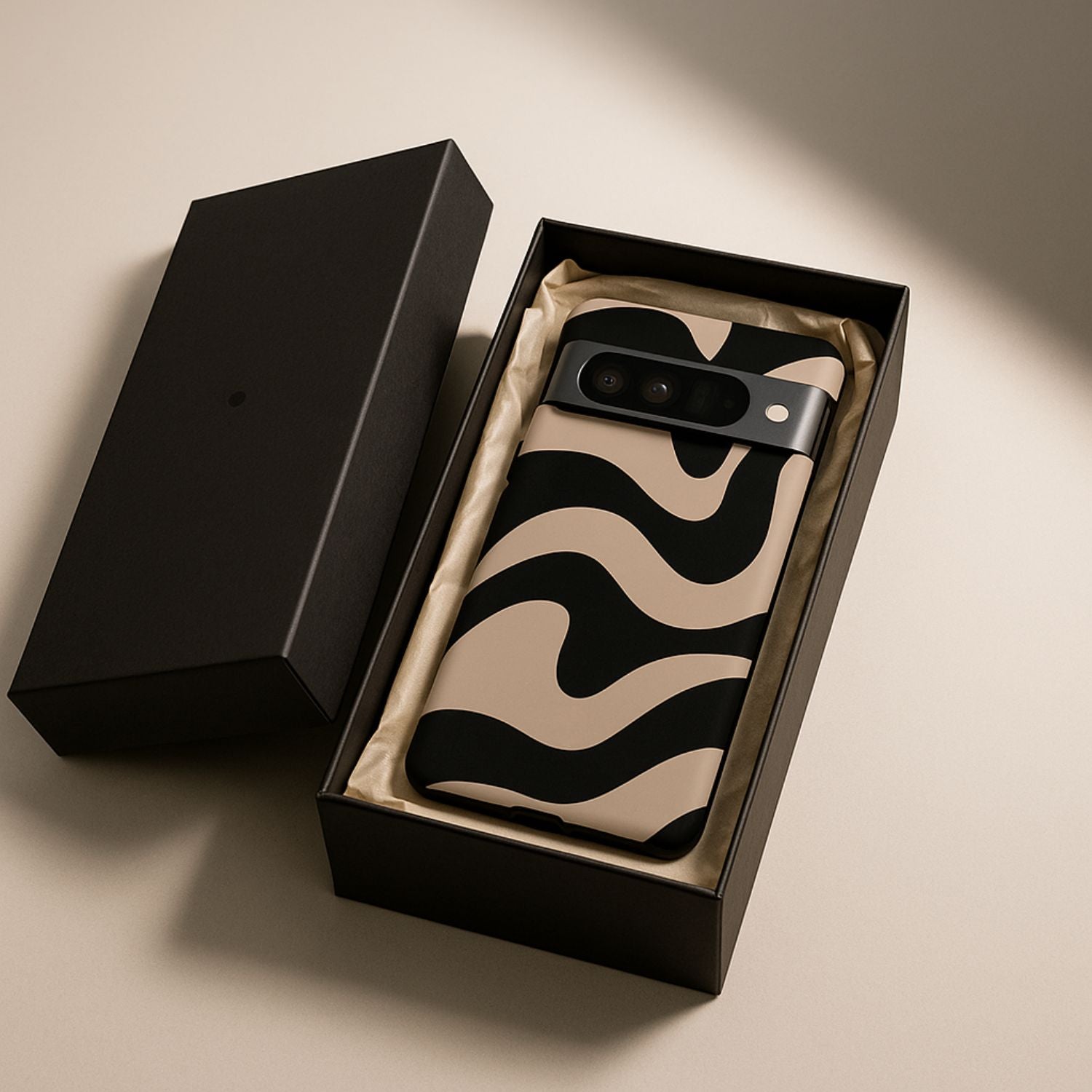 The Wave Flow Case combines modern style with reliable protection. Its bold wavy pattern in contrasting tones creates a striking look that stands out, while the slim yet durable build ensures your phone stays safe from everyday bumps, scratches, and drops.