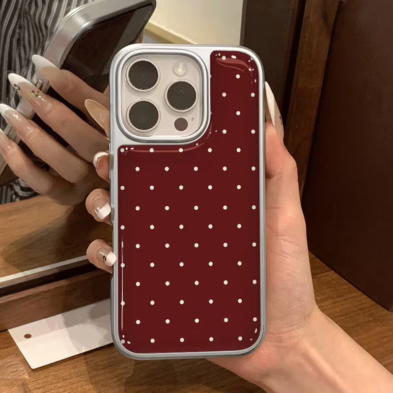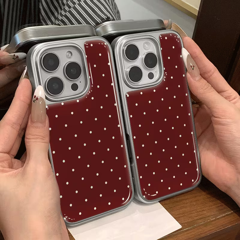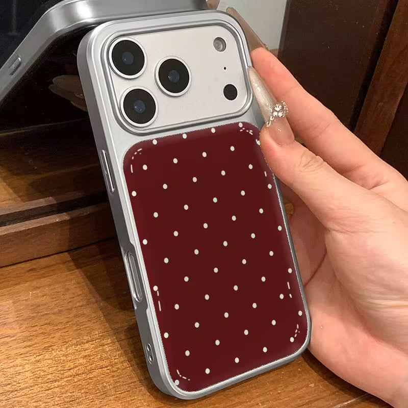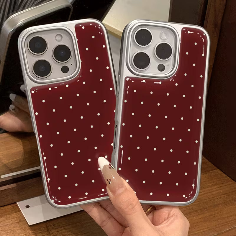 Chic, minimal, and effortlessly stylish, the Wine Dots Case blends timeless elegance with everyday practicality. Featuring a rich wine-toned backdrop accented with delicate white polka dots, this design brings a classic charm with a modern twist. The smooth, glossy finish enhances the color depth while adding a refined, polished look.